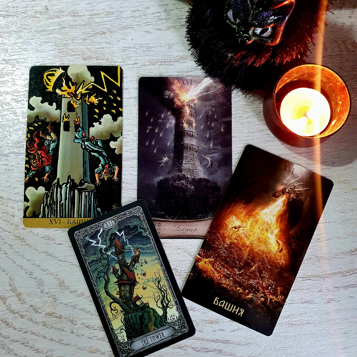 Чистилище, Башня Дьявола, Огонь, Дом Божий - уххх, страсти какие в одной карте. 🤗Здравствуй, читатель! Я проживаю карту Башня. Хочу отметить, что "Умеренность", которую я проживала недавно затягивает, очень, начинается апатия и уже ничего не хотелось. Но задав вопрос таро "Что же проживать дальше, чтобы выйти из состояния застоя?" мне выпала "Башня". Карта поставлена на стол, и очень напрягает. После медитации появляется чувство беспокойства, спустя день появляется накопившаяся агрессия. Нужен выплеск, обязательно. Сама карта говорит о выплеске накопившейся энергии, освобождение взрывных сил. Выплескиваю свою энергию я в спортзале. Корона - говорит нам об утрате контроля, также о сломленном Эго. Молния - Божья кара, воздействие внешних сил. Для меня молния это скорее озарение на ошибки. Башня - защита, ощущение власти над ситуацией, выстроенный мир. В книгах пишут, что это башня из слоновой кости - отсылка к живому организму. Тут наш быт, то что строилось и создавалось. Речь идет о