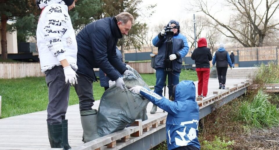 Жители Зарайска вместе с главой округа очистили от мусора берег реки Осетр