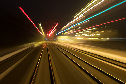 Редко удается выбраться в центр, да и вечерами я всегда дома, а тут - случайный билет в театр. Возвращалась на пригородной вечерней электричке; в четверг народ гуляет допоздна - по старой студенческой привычке тянет всех в бары и рестораны, к дрожащим городским огням.