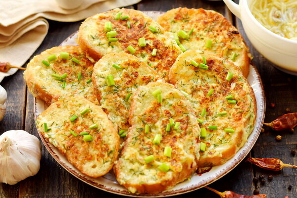 А раньше их делали, потому что было пусто в холодильнике. Тут продуктов много не надо: белый батон, пару яиц, плавленый сырок, да маслице, чтобы пожарить. Получается вкусно, сытно и аппетитно. Очень хорошо к супу (бульону) или просто к чаю. Часто жарю такие гренки на завтрак, удобно, что это занимает всего 10 минут, можно управиться, пока домочадцы застилают кровати и чистят зубы. Что потребуется: Приготовление: Сначала сделаем сырно-яичный кляр. В мисочке разбалтываем вилкой 2 яйца. Теперь трем сюда на терке плавленый сырок, добавляем измельченную зелень укропа и чеснок через пресс. Размешиваем массу до однородности. Ставим на плиту разогреваться сковороду с маслом. Белый батон нарезаем тонкими ломтиками и окунаем в кляр. Отправляем на сковородку. Обжариваем на умеренном огне с обеих сторон. Готово! Сразу же подаём греночки к чаю.