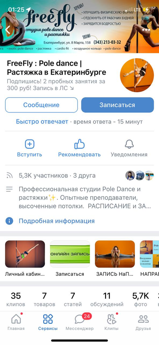 Кейс: Студия растяжки и pole dance "FreeFly" г. Екатеринбург