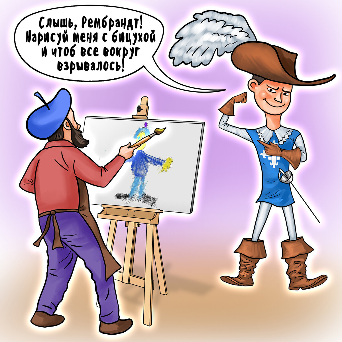Почему мы назвали полотно «дембельским альбомом»? Потому что ее заказал отряд мушкетеров. Однако когда Рембрандт все сделал, платить многие отказались. Ну, посудите сами, все скинулись одинаково, по 100 гульденов. А изображают тебя во втором ряду в вполоборота... Нет, чтобы всех в рядочек, как на параде... так ведь изобразил какой-то бардак. Кто там эта девочке по центру – вообще никто не знает, а уж она-то явно не скидывалась на картину.
