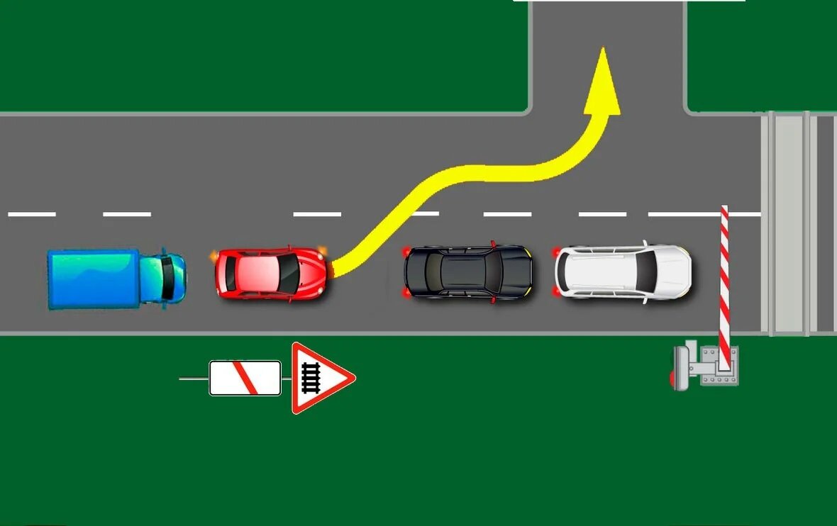 Друзья приветствую. Давно у нас не было публикации, давайте продолжим. Сегодня довольно не простой вопрос по ПДД, с которым вряд ли каждый справится. Многие из нас сталкивался с такой ситуацией на дороге, спешим едем, а тут затор, а буквально через несколько метров есть поворот, куда нам и нужно повернуть, да и на дороге не сплошная и многие просто выезжают на встречку и поворачивают. А вот разрешен ли такой маневр по ПДД? Давайте рассмотрим такую непростую ситуацию! Подъезжаете на автомобиле к переезду, а переезд закрыть, все стоят ждут. Однако, Вам не нужно пересекать переезд, а нужно повернуть налево не доезжая переезда, встречного транспорта нет. Вы решаетесь выехать на встречную полосу и повернуть, как показано на схеме, разметка при этом не запрещает выезд на встречную полосу. Вопрос: Разрешается ли Вам совершить данный маневр? Обязательно Оставьте свой ответ на вопрос в комментарии, а уже после читаем ниже. Так, согласно данной схеме, мы видим, что ничего не запрещает выехать н