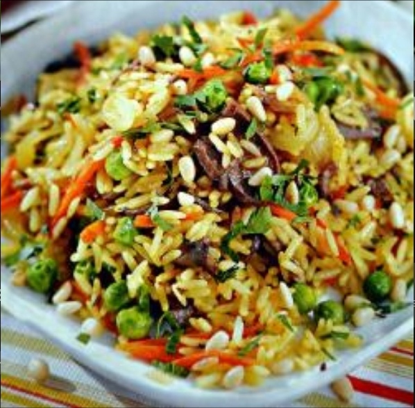 Ингредиенты -350 риса для плова -2 луковицы -2 морковки -2 головки чеснока -200г шампиньонов -1-2 сладких перца -60 мл растительного масла -орегано, зира, соль, перец Приготовление 1.Грибы крупно нарезать, перец нарезать соломкой. Морковь натереть на тёрке или нарезать соломкой, лук-полукольцами. 2.На растительном масле обжарить лук и морковь 5 мин, затем добавить рис и готовить ещё 5 мин. Отдельно обжарить перец и грибы. 3.Влить 2 стакана воды и на сильном огне довести до кипения. Добавить специи и головки чеснока. 4.готовить плов около 20-25 мин на маленьком огне под крышкой. 5.Добавить к плову перец и шампиньоны, аккуратно перемешатьи положите в глубокую тарелку, украсить мелко нашинкованной зеленью. Пищевая ценность:100 грамм-69.1 Белки: 2.2 гр Жиры: 2 гр Углеводы: 11.4 гр