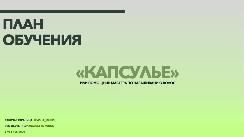 Уже давно каждый уважающий себя мастер по наращиванию волос работает с помощником. Помощник мастера (капсулье) - это не только специалист по подготовке волос к наращиванию, это еще и правая рука мастера. Это, прежде всего, квалифицированный специалист, умеющий самостоятельно принимать решения. Для тех, кто решил сменить свою деятельность, и испытывает большую любовь к волосам и всему, что с ними связано, и не знает, с чего начать. Для тех, кто ищет для себя что-то новое. Для тех, кто давно хотел попробовать себя в роли мастера по наращиванию волос но, высокая цена за обучение -останавливала. Для тех, кто ищет подработку (у тебя будет возможность иметь сввободный график, работать 2,2 или даже только по выходным!) Так чему же ты научишься? Обучение проводится в 2 учебных дня, в конце каждого из которых вы получаете домашнее задание с практикой. все усправжения прописаны в индивидуальном дневнике, который вы получаете в начале обучения. о нем я рассккажу немного позже) Первый день проход