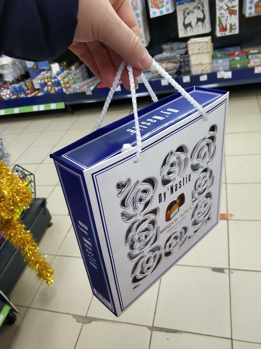 Приветствую, уважаемые! Если вы в эти выходные и ближайшие дни собираетесь в магазин Фикс Прайс, советую посмотреть перед выходом товары из новой партии, чтоб понять, что нужно купить. Это вторая часть с добавлением. И начну с новогодних подарочных упаковок. На стойке по теме вот такие коробки с ручками появились, очень красивая упаковка. Коробка в сумочке, оказывается. А сумпку с ручкой можно и отдельно использовать потом при желании. А вообще такая двойная упаковка, конечно, существенно повышает стоимость товара. Ценника на них пока еще нет. Интересно другое - насколько начинка, вернее содержимое соответствует красивому оформлению? Часто под красивыми упаковками вкус и качество не очень. Так думаешь порой, а зачем они так? Ради чего, если после пробы потом не купят повторно... Как одноразовые бренды создают... Надеюсь, что эти конфетки не такие, если кто уже пробовать, прошу напишите в комментарии отзывы. К новому году многие сами начинают мастерить упаковки, поделки различные, иг