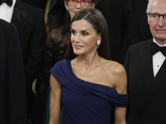 Для этого мероприятия Летиция выбрала вечернее платье с асимметричным декольте от Каролины Эрреры, одного из ее любимых дизайнеров.