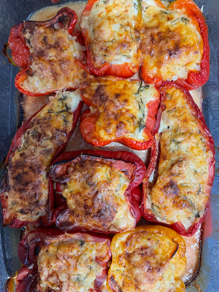 Все знают о пользе овощей . Красные овощи содержат большое количество бета-каротина (витамина А), клетчатки и антиоксидантов, витамина С и ликопина. Вариаций фаршированного перца много.Я люблю запекать перец , так он получается еще слаще . ловите рецепт : Готовим сливочную заливку В стакане с теплой водой смешиваем 2 ст/л сметаны и 1ст/л томатной пасты Начиняем наши перчики начинкой и укладываем в форму . Заливаем сметаной заливкой . Ставим в духовку на 180гр на 1 час за 10 минут до готовности посыпать сыром приятного аппетита 😋