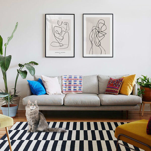 Еще один популярный узор в этом году. Только не узкие, под линеечку, а широкие, размашистые. Сюда бы отнесла и колорблок. Круто смотрится на шторах: нижняя часть выполнена в отличном от верхней части цвете и занимает почти половину всей шторы.