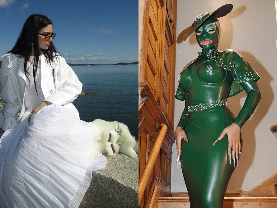 Дуа Липа Певица — фанатка странной и «уродливой» обуви. На этот раз Дуа Липе приглянулись ботильоны с пушистым белым мехом, каблуком-шпилькой и острым мысом. В мохнатой обуви звездная модница отправилась гулять к морю, вызвав недоумение местных жителей. А вот фанаты всегда готовы поддержать выбор своей любимицы. Их не смутило, что Липа даже в жаркую погоду носит тёплые ботинки. Похоже, это её «фишка». Megan Thee Stallion Главным цветом осени для Megan Thee Stallion стал изумрудный. Певица вдохновилась шлемами, в которых позируют Канье Уэст и Ким Кардашьян, и выгуляла свою версию закрытого лица. Меган облачилась в костюм из латекса с маской и «встроенной» шляпой с широкими полями. Дополнили образ тени в оттенке сочной зелени и накладные ногти пугающей длины. Не хочется неожиданно встретиться с опасной жещиной-огурцом в тёмном переулке! А второй образ в изумрудной гамме нам нравится больше. Charli XCX Даже самым отъявленным модницам порой хочется отдохнуть от трендов. Charli XCX выгляди