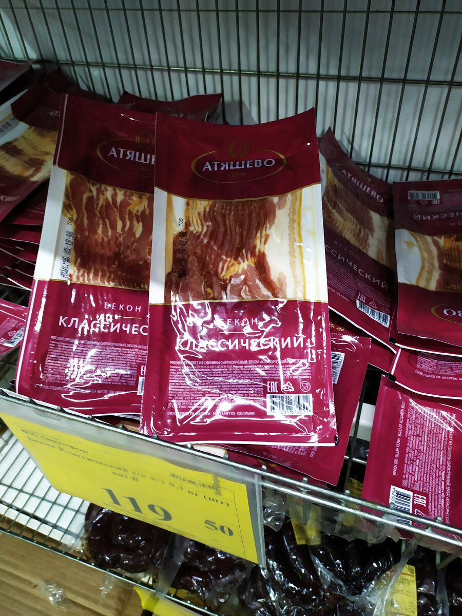 Сегодня "Светофор" просто полон покупателей, которые приехали за продуктами и товарами для дома. Расхватывается всё, что недавно завезли в ближайшие дни, а многие стоят к кассе с полными тележками. В этом обзоре, хочу поделиться с вами увиденным в "Светофоре" города Новороссийск. Нарезка сырокопчёного свиного бекона "Классический", в упаковке 300 грамм. Цена 119 рублей. Мороженая тушка утёнка 1 сорта. Цена 199 рублей за 1 кг. Мороженый стейк индейки, нарезан по 1,5-2 см. Цена 162 рубля за 1 кг. Небольшая мороженая форель из Турции. Цена 400 рублей за 1 кг. В контейнере кольца кальмара в рассоле, массой 500 грамм. Цена 161 рубль. Свежая пекинская капуста по очень низкой цене, всего 36 рублей за 1 кг. Свежие грибы шампиньоны от местных поставщиков. Цена 109 рублей за 1 кг. Крупа гречневая "Увелка", в упаковке 800 грамм. Цена 76 рублей. Грибное маринованное ассорти "Дорофеев", в стеклянной банке 580 мл. Цена 126 рублей. Майонез провансаль "Печагин" классический 67%, в мягкой упаковке 800