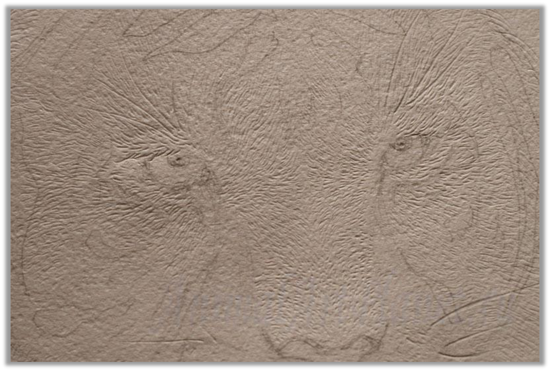Уже можно приступать к полоскам. В принципе, о них нельзя забывать на протяжении всей работы. Но сейчас мы их только-только наметим. Причем я намечаю их графитовой крошкой и резиновыми кистями, это позволяет сразу растушевать края полос и создать эффект меха. Все движения кистью строго по росту шерсти.