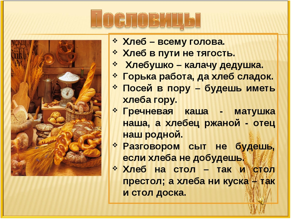 В древние времена, хлеб доставался народу очень тяжелым трудом. Именно поэтому его так и чтили. Как понять «хлеб - всему голова»-:значение и смысл пословицы, подумаем почему так говорят? Во многих славянских языках слова «голова» и «главный» имеют один корень и родословную. Именно поэтому русскую пословицу «Хлеб - всему голова» можно трактовать как «хлеб - самый главный продукт на столе». Хлеб насыщает, он калориен и подходит практически ко всем приемам пищи, будь то завтрак, обед или ужин. Это было важно раньше, это остается важным и сейчас. Причем надо отметить , что хлебом назывался ржаной хлеб –черный, как мы его сейчас называем. Он был основным насыщающим продуктом, пищей после приема которой человек способен был к тяжелому труду. Хлеб белый, пшеничный-был хлебом к празднику, в некоторой степени баловством и лакомством и назывался булкой. Хлеб резали «с головы» – с приподнятого края каравая. Были целые ритуалы на этот счет. В Белоруссии хозяин был должен выйти на улицу и там разре