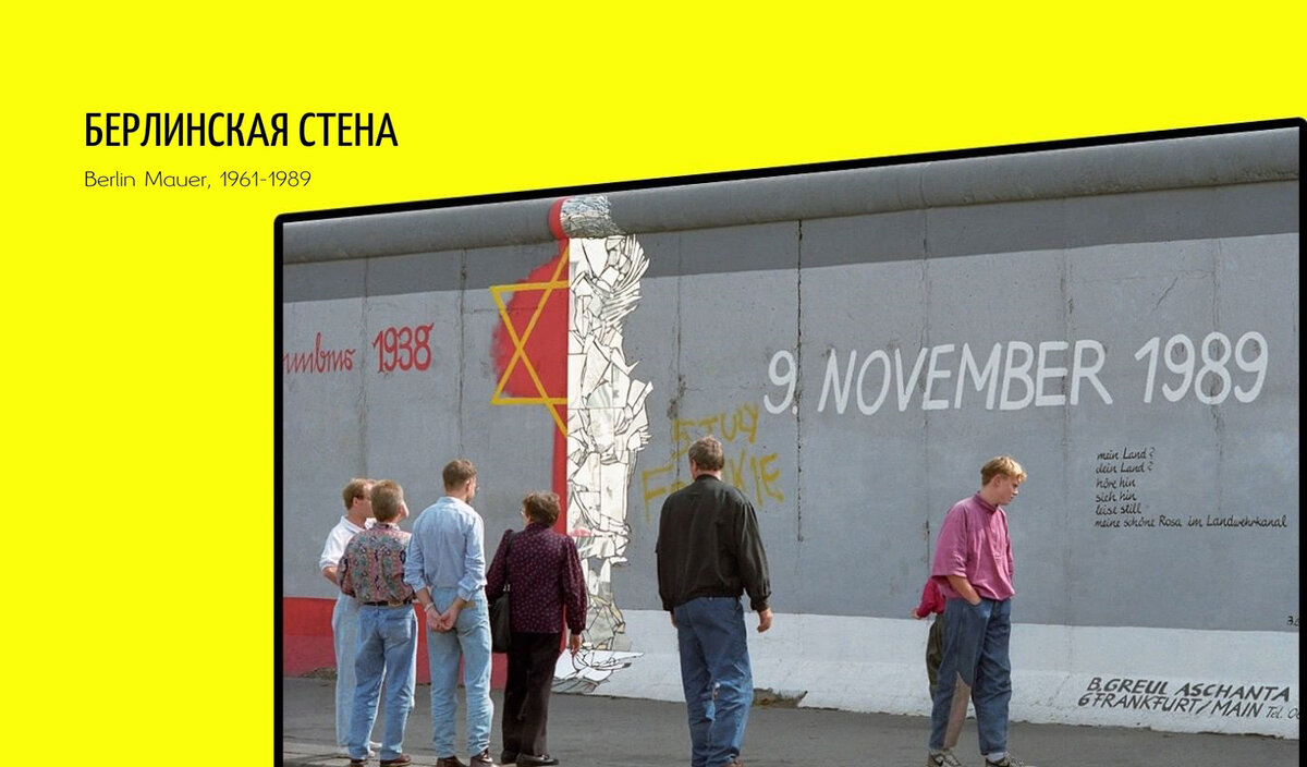 В Берлине сохранилось лишь три ее участка, самый известный из которых превращен в галерею муралов, но отдельные фрагменты этого сооружения разъехались по всему свету. Во многих городах мира можно найти остатки этого бетонного монстра, своей судьбой доказавшего, что нет таких барьеров, которые не повергло бы стремление людей к свободе.