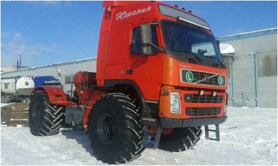 В 2002 году на Петербуржском тракторном заводе произошло знаменательное событие, знаменитый советский трактор, который любили и за пределами страны, был снят с производства. Речь идёт о Кировцах К-700А и К-701, чьи кабины уже в конец устарели и не отвечали даже минимальным требованиям безопасности и технологичности. Им на замену пришёл К-744, который был значительно дороже привычных машин и не смог превзойти их популярность в те годы. Решением проблемы могла стать банальная замена кабины на более новую, которая отвечала бы современным нормам, и такой проект был реализован, правда происходило это в Ульяновске, где на базу советского трактора К-700 поставили кабину от свеженького Volvo FH. Поначалу кажется, что это какая-то шведская разработка грузовика с шарнирно-сочленённой рамой, но на самом деле это запатентованный отечественный проект под названием «Южанин». Наличие патента на новый трактор позволило законно поставить его на учёт в ГИБДД, что давало полную свободу действий при его
