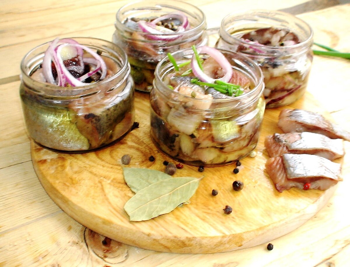 Ингредиенты: 500 г жирной сельди, 1 соленый огурец, 1 морковь, 3 луковицы, 1 ч.`ложка горчицы, 100 молока, 1 ч. ложка уксуса. Для маринада: 2 ст. ложки уксуса, 1 стакан воды, 2 лавровых листика, 3 горошины душистого горошка, 1. ложка сахара, 1 луковица, нарезанная кольцами.