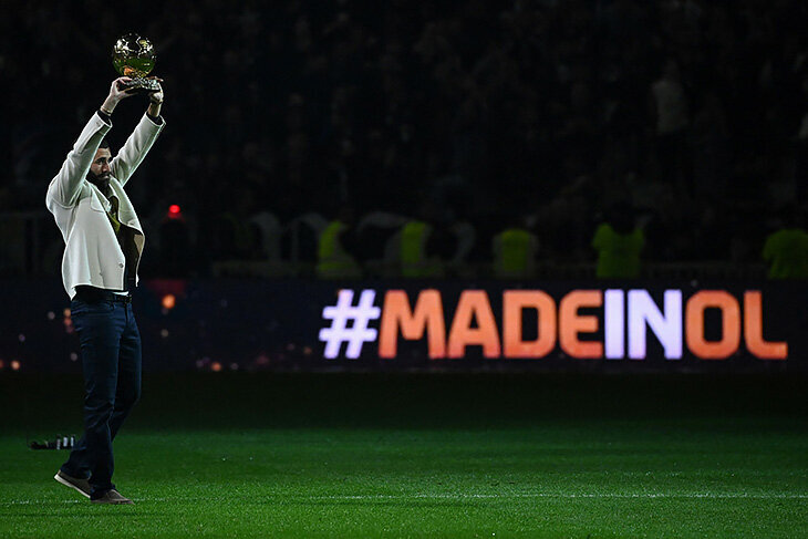 Карим Бензема перед стартом ЧМ-2022 успел заскочить на стадион родного «Лиона». В перерыве игры с «Ниццей» (1:1) он показал болельщикам выигранный «Золотой мяч».