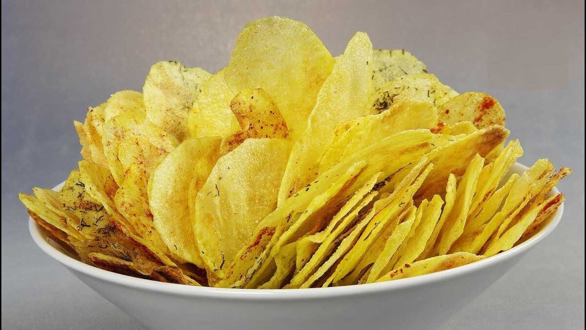Чипсы никогда не считались полезными, особенно для детского организма. Но ведь иногда так хочется чего-нибудь остренького и вкусненького! Как же быть с этим? Есть ли выход из сложившейся ситуации? Эту ситуацию можно решить очень легко: приготовьте вкусные и полезные чипсы дома. Они не будут содержать вредных добавок и усилителей вкуса, но очень вам понравятся. Простой и быстрый способ приготовления домашних чипсов в микроволновке Чтобы приготовить 1 порцию чипсов, вам не потребуется много времени. Продукты используются также самые простые. Ингредиенты: - картофель - 3-4 штуки среднего размера; - растительное масло для смазывания пергаментной бумаги; - специи (соль; перец чёрный и красный; приправа для картофеля). Приготовление: Приготовить тарелку, застеленную пергаментной бумагой и смазанную растительным маслом. Картофель порезать на тонкие пластинки. Сделать это можно с помощью ножа или на кухонном комбайне. Выложить кусочки картофеля на тарелку в один слой. Сверху посыпать картофе