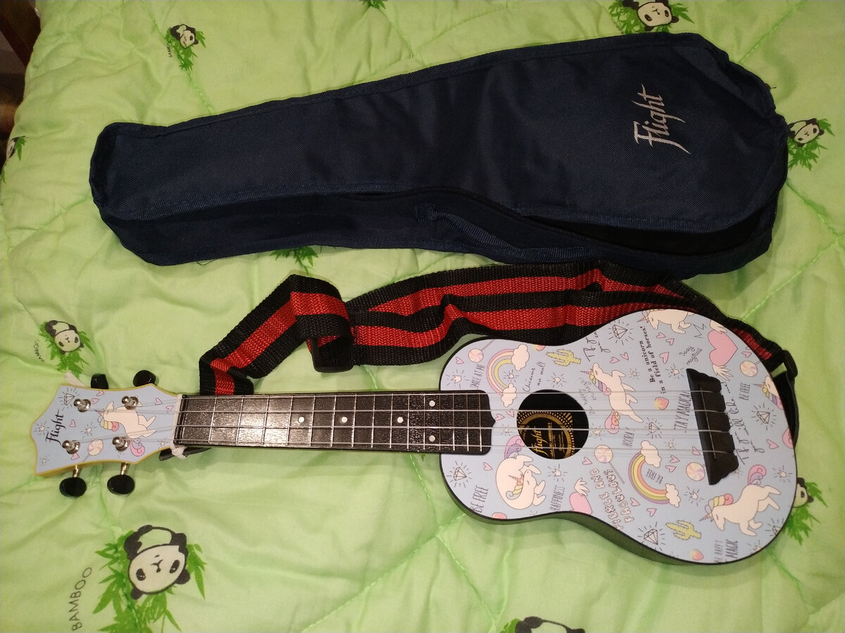 Про укулеле и почему она у нас появилась я писала в предыдущей статье. Но, как и любой струнный музыкальный инструмент, укулеле требует настройки. Это укулеле сопрано, в прилагаемой брошюре написано, что строй такой: СОЛЬ - ДО - МИ - ЛЯ. Вот только я в укулелях вообще не разбираюсь. И меня одно такое распределение звуков уже ввело в состояние когнитивного диссонанса: на скрипке-то как - соль - ре - ля - ми. То есть, равное расстояние между звуками - 5 - 5 - 5. А на укулеле получается (как мне сначала показалось по скрипичной логике) 4 - 3 - 4. Но окзаалось, мне это казалось. Потому что на деле оказалось, что это всё должны быть ноты первой октавы. А даже те, кто знаком с нотами и струнами очень приблизительно, знают, что сначала идёт нота до, а потом уже, после ещё нескольких, соль. А тут верхняя струна тоньше второй сверху! А струна, которая тоньше, должна звучать выше. Это противоречит логике. Поэтому, пересилив состояние когнитивного диссонанса, я настроила укулеле: верхняя струна -
