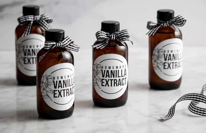 Когда я хочу преподнести ванильный экстракт в качестве подарка своим знакомым домашним кондитерам, я люблю использовать бутылки из янтарного стекла объёмом примерно 150 мл. Бутылочки темного стекла помогут защитить экстракт от солнечных лучей, а сами выглядят очень красиво и профессионально!