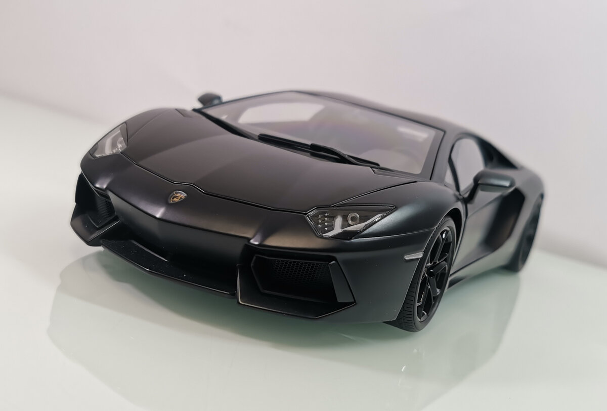 Производитель: AutoArt Серия: Signature Материал: металлический сплав (diecast) Год производства модели/оригинала: 2012/2011 Статус: редкая модель Компания AutoArt выпустила большое количество Aventador в разных цветах и исполнениях, но вариант в цвете Nero Nemesis был первым. Практически параллельно, а может и раньше варианта от АвтоАрта в продажу вышла версия модели от GT Autos, суббренда welly, был соблазн сэкономить, но удержался и теперь не жалею. Жалею, наверное, только о том, что не взял версию родстер, она просто великолепна, особенно в цвете Azurro. А более поздние модели - LP750-4 уже выпускались в пластике Дорогие версии АвтоАрт располагали расширенным функционалом, до китайских дилерок, конечно, далеко, но все же солиднее, чем у стандартного Арта Под прозрачной крышкой капота скрывается V12 6,5 литров, 700 л.с., 350 км/ч, 2,9 секунд до первой сотни, двигатель отлично проработан. Капот впереди имеет правильные петли и флокирован В интернете часто пишут, что механизм подъема