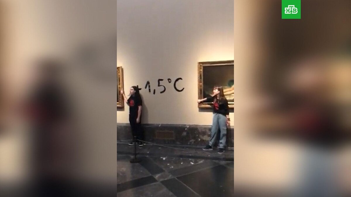 Инцидент произошел в Национальном музее Прадо в Мадриде. На кадрах, опубликованных движением Futuro Vegetal в соцсетях, видно, как две девушки приклеили свои руки к рамам картин «Маха обнаженная» и «Маха одетая». Рядом же на стене черной краской написано «+1,5 градуса».