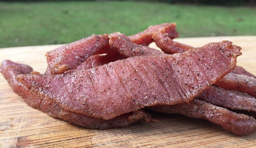 Я люблю готовить вяленое мясо и творчески подходить к различным рецептам и техникам. Недавно я начал делать вяленую свинину в своей духовке и был чрезвычайно доволен вкусом, текстурой и доступностью конечного продукта! Позвольте мне показать вам, как я делаю вяленую свинину, чтобы вы могли приступить к приготовлению своей первой партии уже сегодня! Подготовка свинины Лучшим отрубом свинины для приготовления вяленой свинины является корейка. Вырезка лучше всего подходит потому, что: Я использую 1-2кг куски свиной вырезки для приготовления вяленого мяса. Вот как выглядит одна из них после удаления жировой прослойки и серебристой кожицы. Я люблю нежное вяленое мясо, поэтому я нарезаю мясо против волокон полосками размером 3/8 дюйма, используя доску для вяленого мяса, чтобы получить ровные ломтики. Доска для вяленого мяса проста в использовании, очень эффективна и быстро очищается. Старайтесь не нарезать мясо толще 2-3 см, так как это затруднит правильную сушку мяса. Вяление свинины