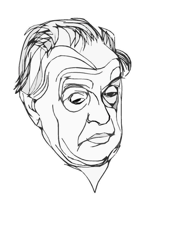 Если кто не узнал человека на моём рисунке, так это Александр Зиновьев. И совсем маленький о нём текст Второй план …Я вспомнил, как мы приглашали сотрудничать в своём журнале Александра Зиновьева. Он тогда только-только вернулся из своей неметчины. Приглашать его выпало мне, поскольку я сам и инициировал эту идею. Я, конечно, несколько взволнован был честью, которую самолично и взвалил на себя. С диссидентом и мнимым нашим врагом такого ранга мне до той поры дел иметь не приходилось. Я не знал даже, на каком языке мы говорить будем. В прямом и переносном смысле. Короче, он задал мне следующий вопрос, который, как я и понял, должен был решить всё дело: — А кто с вами сотрудничает? Тут я, конечно, все козыри и открыл. —У нас в авторах Виктор Астафьев, Валентин Распутин. У нас Солженицын только что напечатался… — Ну, это всё фигуры второго плана, — сказал Зиновьев в трубку, чем сильно меня расстроил. Мне стало стыдно за журнал, с которым не сотрудничает ни одна фигура первого плана. — Н
