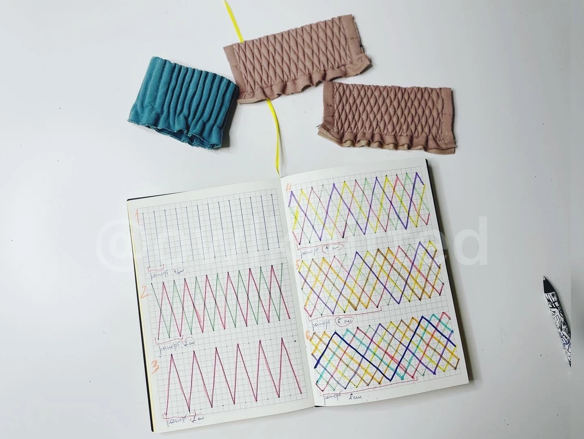 По многочисленным просьбам открываю… …раскрываю свою тетрадку 😅 Многие просили показать схему отстрочки нового пояса, а я возьму и покажу почти все, что пробовала 🫣 Почти, потому что есть ещё парочка идей на следующей странице в тетради, но об этом позже 🤭 Шестой способ, то есть его образец, где-то потерялся (все утро его искала 🤣, безуспешно). Да и образцы с треугольником и большими ромбами тоже пропали 🤔 Но по ним хоть готовые пояса и манжеты есть ☑️ Как я отстрачиваю пояса и манжеты уже рассказывала подробно, пост с ними здесь
