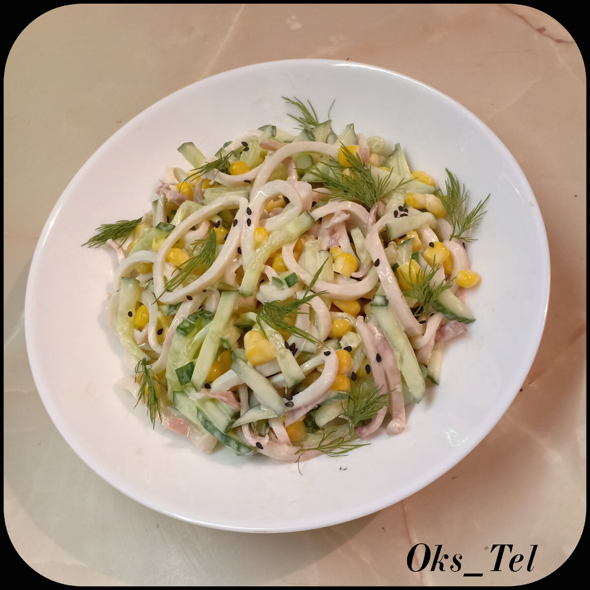 Ну очень простой и гармоничный салат из кальмаров на быструю руку. ПОНАДОБИТСЯ: - 500г кальмаров, - 1/2 банки консервированной кукурузы, - 1 свежий огурец, - майонез, - по вкусу - соль. ПРИГОТОВЛЕНИЕ: 1. Кальмары очистить от пленки, отварить и нарезать кольцами. 2. Огурец нарезать соломкой. 3. В глубокой миске соединить кольца кальмаров, огурцы и кукурузу. Посолить, заправить майонезом и хорошо перемешать. Приятного аппетита! #салат #салатскальмарами #вкусныйсалат #набыструюруку #салатсморепродуктами #напраздничныйстол #быстрыйсалат #легкийсалат #приготовь #рецепты