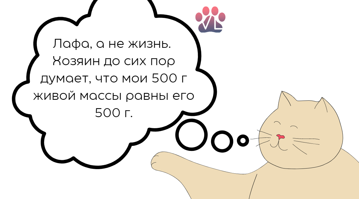 А если взять чихуахуа? В среднем взрослый питомец весит 2.5 кг. Для него +500 г это что-то невероятное (+20% массы тела)... А хозяин и не заметит даже, ведь носит питомца на руках и смотрит только на его милую наружность. Для чиха +500 г это наши +14 кг. Уже весомо, да?