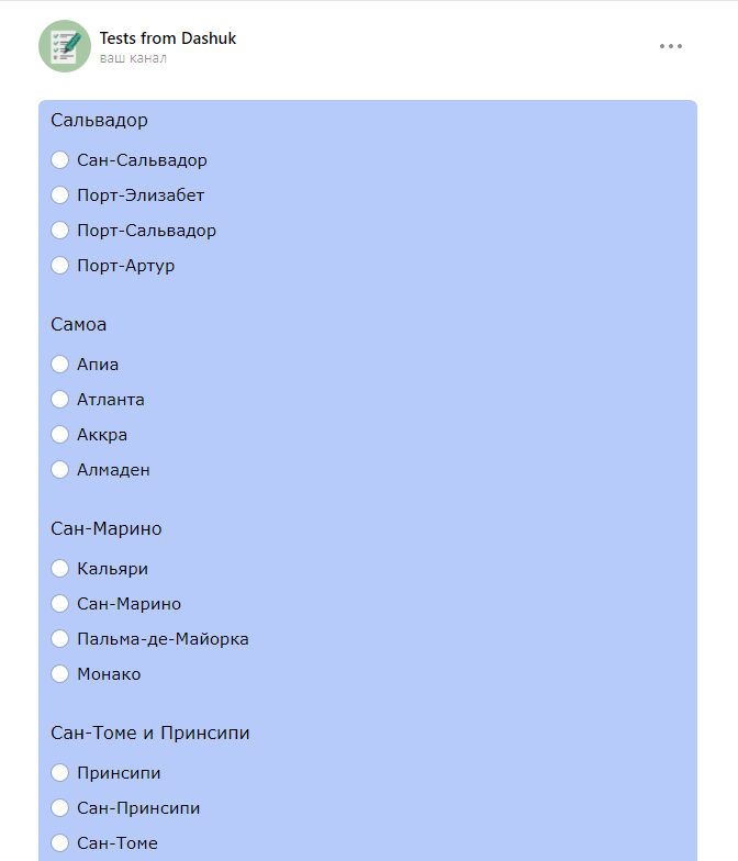 - 4) Первый вопрос написали. Аналогично пишем столько, сколько вам хочется. После этого нажимаем настройки