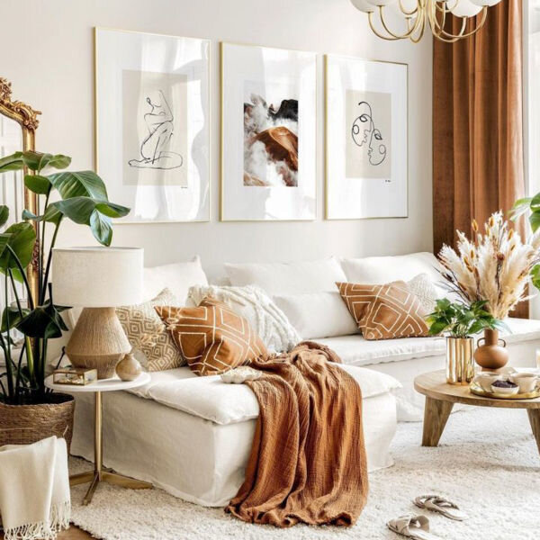 Сводим к минимуму количество фактур, деталей, статуэток на открытых поверхностях. Даже рамы домашней галереи лучше привести к единообразию. Хаотично подобранные, они создают много визуального шума и, следовательно, захламленность комнаты.