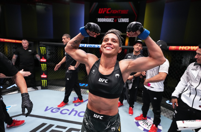 В США состоялся очередной ивент UFC, в главном бою вечера Аманда Лемос победила Марину Родригес техническим нокаутом в третьем раунде. Победное возвращение Тагира Уланбекова Россиянин Тагир Уланбеков провел один из своих самых зрелищных поединков в UFC. В первом раунде ему удалось финишировать Нэйта Манесса. Уланбеков поймал его на гильотину в стойке, закрыл замок и дождался сдачи. http://www.youtube.com/watch?v=cZtvVx5Jmqs Со-главный бой Нил Мэгни сотворил небольшую сенсацию, нанеся Дэниелу Родригезу первое досрочное поражение в карьере. автор фото: UFC Главный бой Девушки закатили настоящее зрелище, показав свой высокий уровень. Аманда Лемос смогла финишировать Марину Родригес в третьем раунде, победив техническим нокаутом. Технические результаты UFC Vegas 64 Предварительные бои: Тамирес Видал победила Рамону Паскуал техническим нокаутом в первом раунде; Джейк Хадли победил Карлоса Канделарио удушающим приёмом во втором раунде; Джонни Муньоз победил Людвика Шолиняна единогласным реше