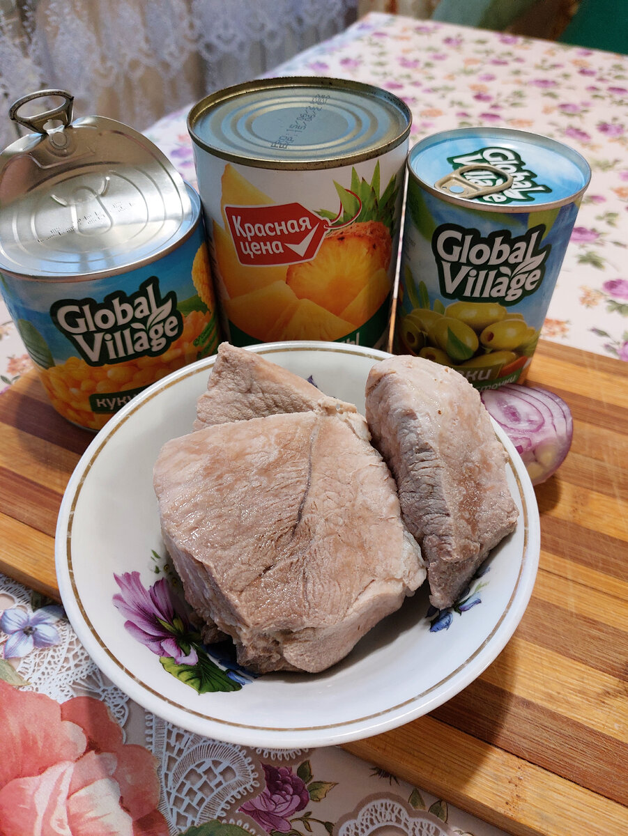 Всем привет😇 Признавайтесь, кто салатная душа?? Я поднимаю руку вверх)) просто обожаю делать всякие #салатики) хочу поделиться с Вами крутым рецептом!!)🤗 Алёнка-кулинар в деле🤪 поехали! Продукты: Приготовление: 1. Луковицу нарезаем соломкой🧅 2. Открываем и добавляем банку кукурузы🌽 3. Открываем банку ананасов и нарезаем кубиком🍍 4. Нарезаем оливки на 4 части🫒 5. Нарываем свинину 🥩 6. Заправляем майонезом, солим, перчим и перемешиваем🧂🍽 Приятного аппетита! Делитесь своими ощущениями в комментариях!😇😉