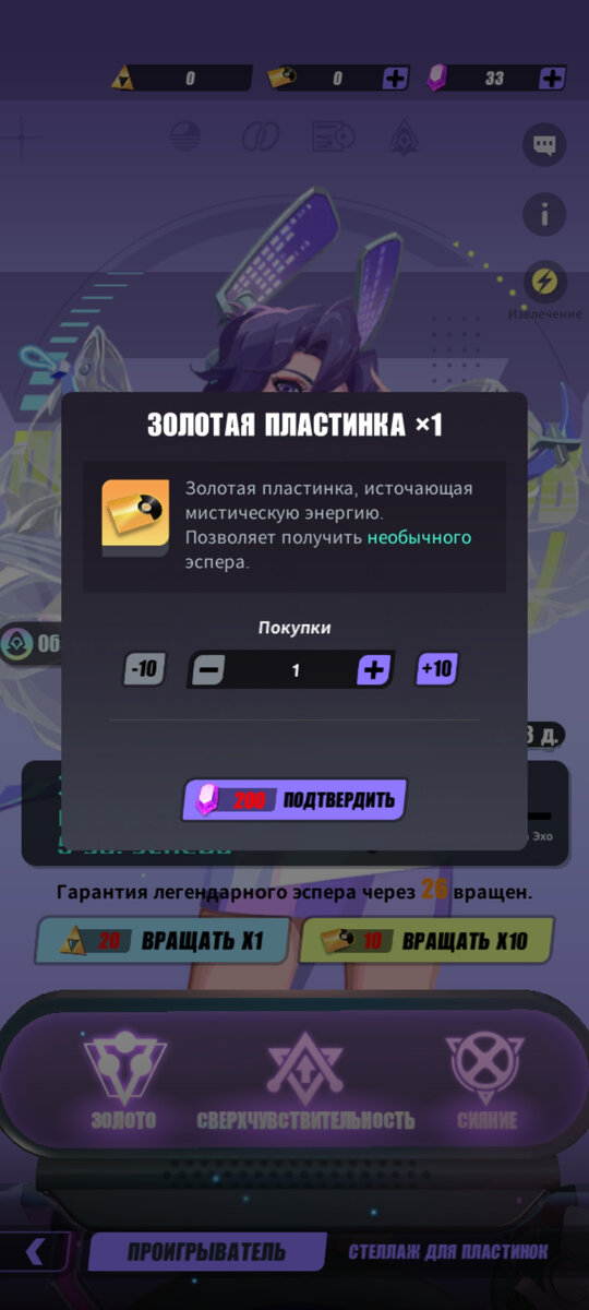 В начале игры у многих новичков появляется вопрос: "Куда же потратить эти алмазы? Купить пластинки для призыва эсперов, энергию или же просто копить их?" Сам я играю не особо давно, но хотел бы постараться помочь новичкам с этой не простой дилеммой. А так же постараюсь расписать плюсы и минусы решений. И так, в игре есть несколько способов потратить кровно заработанные алмазы. 1. Покупка пластинок призыва. Для получения первого легендарного эспера в игре потребуется всего лишь 10 пластинок. Последующие гарантированные легендарные эсперы будут даваться каждые 100 призывов. 1 пластинка стоит 200 алмазов. В самой игре, пластинки добыть не особо сложно. Дают их в достаточном количестве за разные активности. Есть ли смысл покупать их за алмазы? Моё мнение, что если вы хотите обзавестись хорошими эсперами в самом начале игры, то, думаю стоит докупать их. Лично я очень долгое время спускал все алмазы на пластинки. И совсем ни сколько об этом не жалею, так как сейчас у меня есть 15 легендарн
