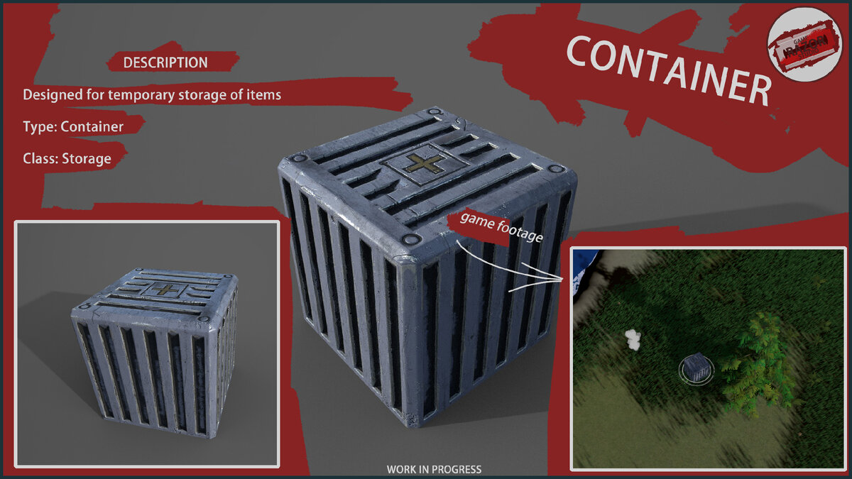 Контейнер предназначен для несколько целей. Первая - после разрушения постройки (через контекстное меню) будет возвращаться часть ресурсов, которые были затрачены при её постройке. Вторая - на локацию, в случайном порядке, будут сбрасываться контейнеры с ресурсами.