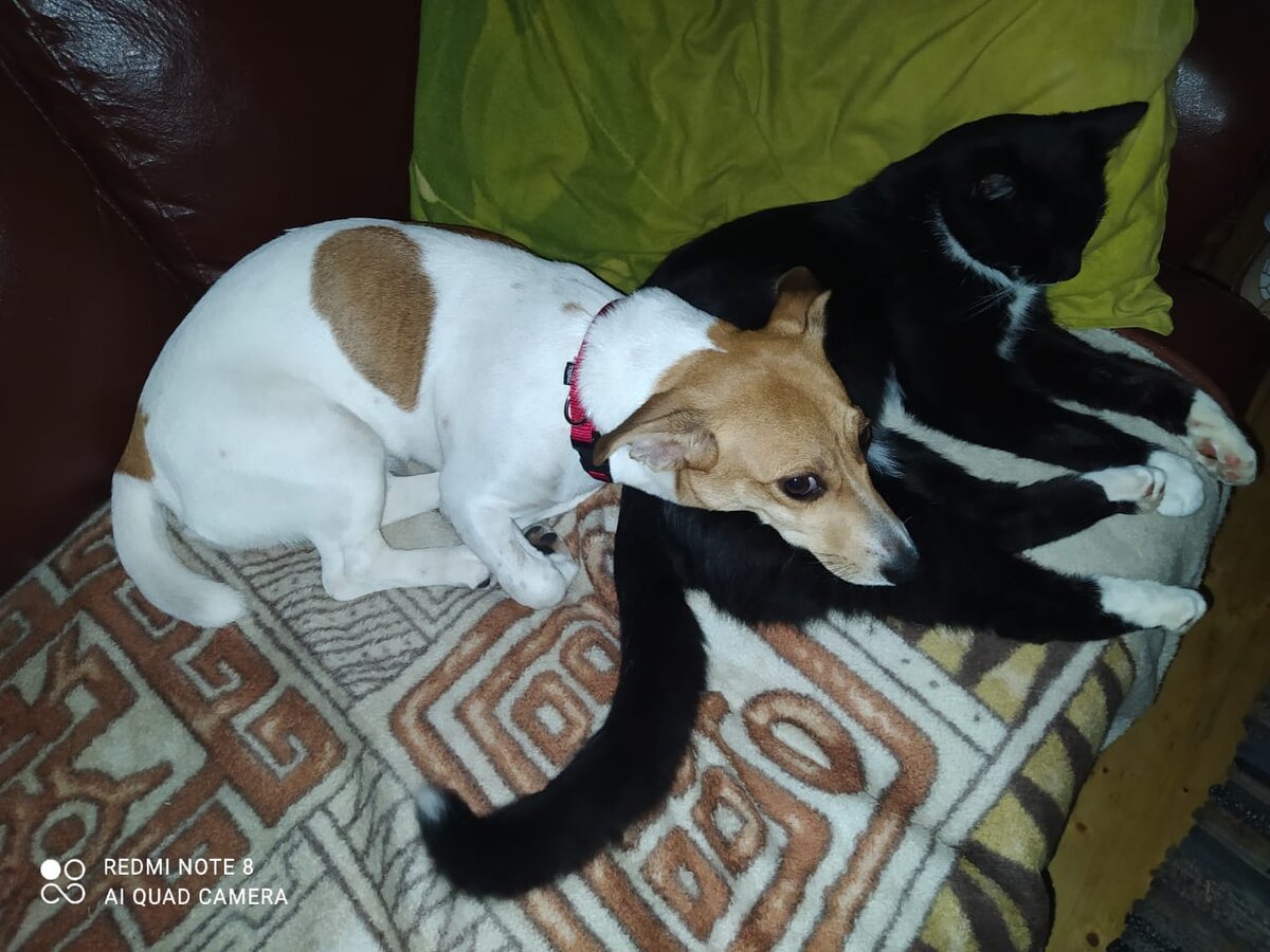 Очень актуальная тема среди покупателей Джек Рассел терьеров. Как они уживаются вместе? Уживаются ли? Стоит ли заводить Джек Рассел терьера, имея кошку или кота? Джек Рассел терьер достаточно миролюбивая порода по большей части, но опять-таки, бывают исключения. Из всего моего количества Джеков охотников, которые прямо не выносят мою единственную кошку, всего двое, и то, если их оставить вдвоем, они просто понюхаются. Джеки опасны стаей, потому как они и охотились исторически стаей, и вот когда их толпа, их боятся даже дикие животные и крупные собаки. И все-таки все индивидуально и зависит от характера конкретного Джека. Кошки — это животное по сути, эгоист и терпеть кого-то тоже не особо хочет. Вот так получается и уживаются охотник Джек Рассел терьер и независимая кошка! И на самом деле, при любом раскладе им некуда друг от друга деваться, да и опасности для кошки один Джек Рассел никакой не представляет, она вполне сможет себя защитить, даже если Джек будет агрессировать, так как