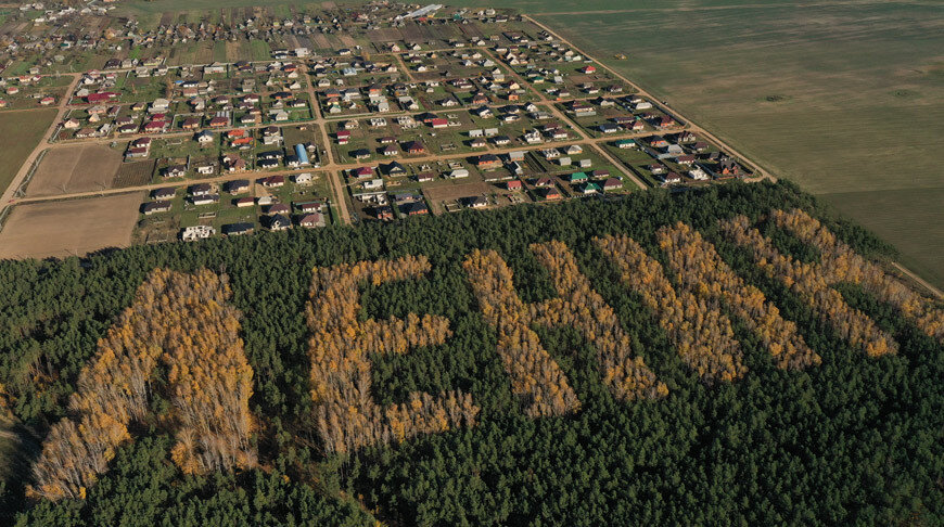 По мнению лесничего, в нынешнем состоянии деревья еще простоят минимум 20 лет. Поэтому у нас остается возможность увидеть исполинских размеров надпись. Правда, придется запастись квадрокоптером - иначе оценить масштаб проекта невозможно. И лучше делать это осенью: листья березы меняют цвет и на контрасте с вечнозеленой хвоей надпись становится более отчетливой.