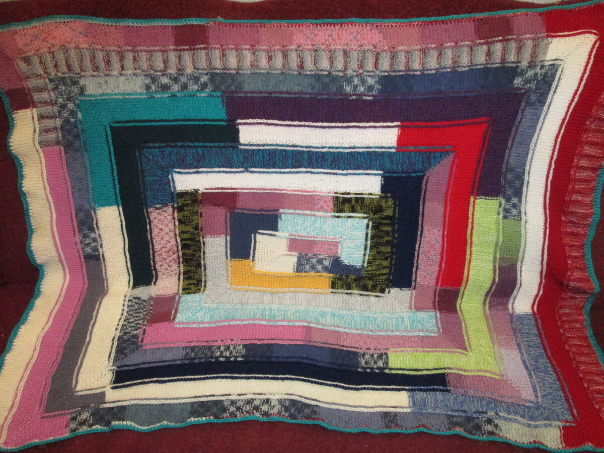 Всем доброго дня и хорошего настроения))))) Как я уже писала раньше, вязать я начала очень-очень давно. С того дня, когда я впервые взяла в руки спицы, прошло 50 лет с хвостиком (самой странно, что уже так много), но интерес к пледам проснулся сравнительно недавно. Как и у любого человека, который вяжет много, у меня скопилось много совсем мелких, просто маленьких и среднего размера остатков, которые выкинуть рука не поднималась. Выросшая в эпоху тотального дефицита, когда в нашем городе пряжи практически не продавалось, я привыкла бережно относиться к любым вещам, а уж к пряже тем более. Очень хотелось куда-нибудь пристроить эти остатки. "Ходила" по тырнету, искала идеи и случайно нашла пост, в котором автор показала свой плед "10 петель". Описания в нем не было, но я же не первый день (замужем) в интернете - нашла, сначала описание, а потом и видео. И поняла, что это проще пареной репы на самом деле. Так связался первый плед с условным названием "Я его слепила из того, что было". "На