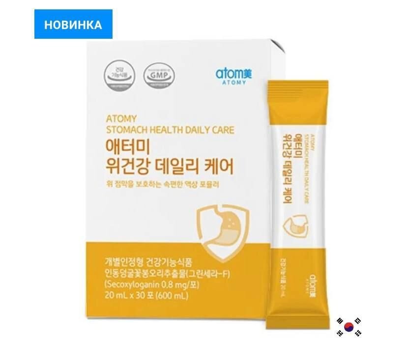 АТОМИ ЗДОРОВЬЕ КИШЕЧНИКА / ATOMY STOMACH HEALTH DAILY CARE 20мл * 30 шт Atomy Stomach Health Daily Care Ежедневный уход за здоровьем желудка с Atomy Содержит 250 мл экстракта почек жимолости, что соответствует 100% суточной нормы. Экстракт бутонов цветков жимолости, отдельно признанный Министерством безопасности пищевых продуктов и лекарственных средств как сырье для здоровья желудка. Может помочь со здоровьем желудка, содержит рекомендуемую суточную дозу экстракта почек жимолости, защищает слизистую оболочку желудка и заботится о вашем желудке Удобная жидкая формула, которая защищает слизистую оболочку желудка 20млx30 пакетиков Состав: Экстракт бутонов жимолости, очищенная вода, неперевариваемый мальтодекстрин, изомальтоолигосахарид, концентрат яблока, концентрат мутной моркови, концентрат сливы, концентрат красной свеклы, концентрат помидоров, концентрат груши, альгинат натрия, концентрат красной капусты, сложный экстракт трав, натуральный ароматизатор яблока, рожкового дерева. ж