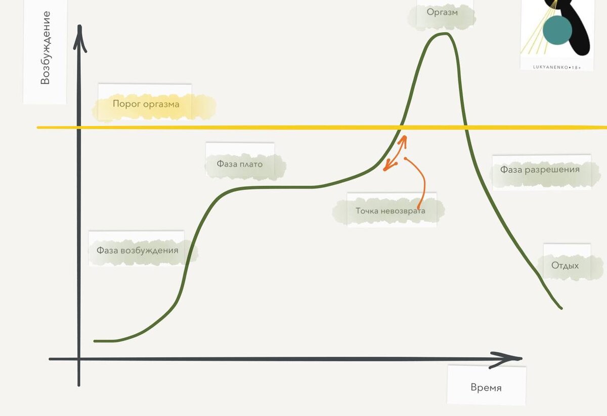 Были такие муж и жена Уильям Мастерс и Вирджиния Джонсон, гинеколог и психолог. В 50-60е годы они наблюдали за 300+ мужчинами и 300+ женщинами, которые у них в лаборатории занимались сексом, обклеенные датчиками. Игстаграмов не было, и вообще все были ханжи, поэтому подопытная публика плохо искалась и часто состояла из проституток и их клиентов (за что потом на них наезжали, мол не репрезентативная выборка). Но это ничего, супруги благодаря наблюдениям стали пионерами сексологии и сделали несколько полезных штук: 8=о Нарисовали график полового акта (изобразила ниже👇) 8=о Исследовали секс пожилых людей(если коротко: сексу и оргазму после 70ти быть!) 8=о И щёлкнули Фрейда по носу с его разницей клитерального и вагинального оргазма (но это отдельная тема, в следующий раз). Ах да, ещё рассказали, почему у женщин мультиоргазм - это ок, а мужчинам, увы, сложновато. Про этих ребят сняли сериал «Мастера секса», пока лежит у меня в закладках, не смотрела. Это я сейчас работу по психоанализу дл