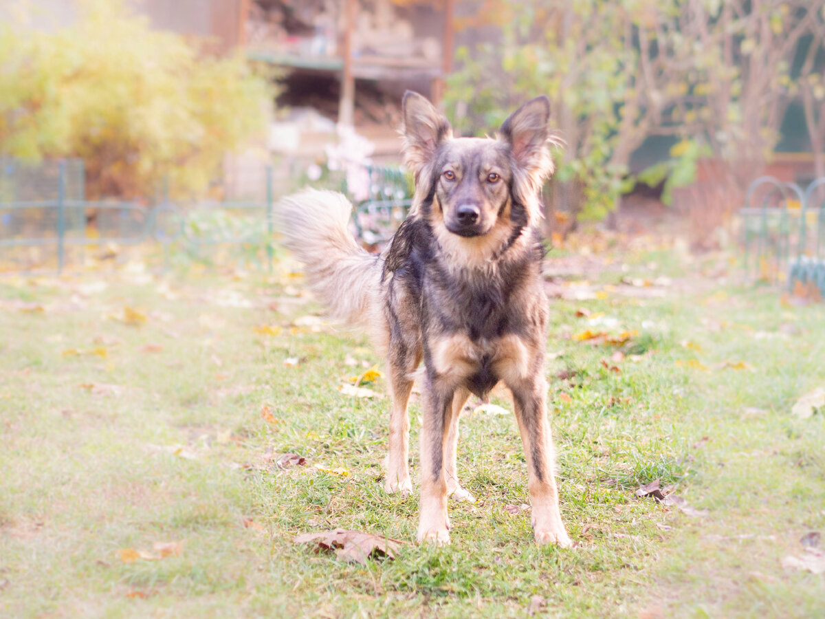 Адельке примерно 1,5 года. Средних размеров, около 47 см, 19 кг. Хорошо ладит с другими собаками. К человеку доброжелательна, но для нежных чувств ей нужно немного времени.