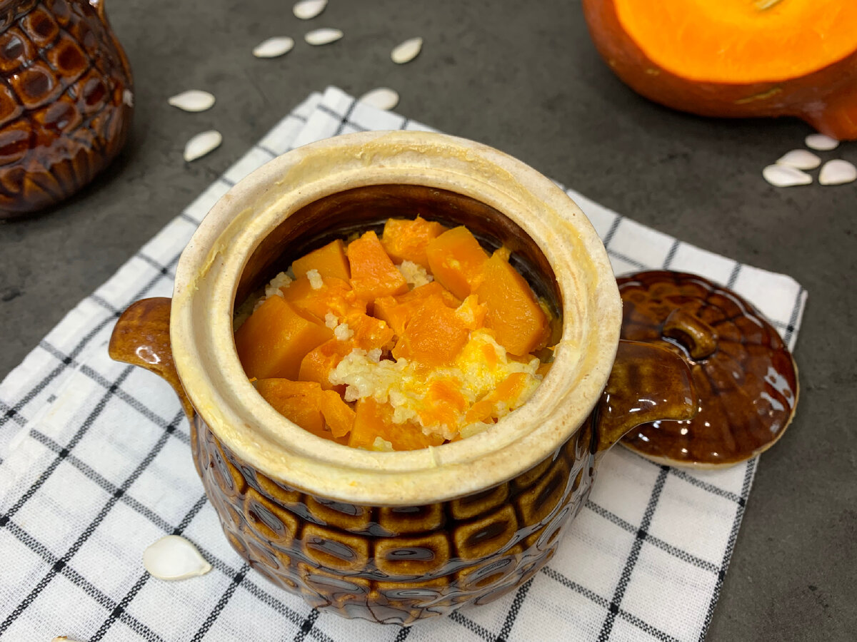 Любите пшенную кашу с тыквой? Тогда попробуйте приготовить ее в духовке и больше на плите и даже в мультиварке вы варить не будете. В духовке она получается томленая и безумно вкусная. Меня зовут Оксана, я собрала для своих подписчиков 10 лучших и простых рецептов с капустой. Каждый месяц я делаю новые подборки с рецептами. Подписывайтесь на канал и обновляйте страницу, чтобы увидеть закрепленный пост с подборкой. Когда впервые приготовила кашу с тыквой в духовке, то у меня половина молока убежало и пришлось потом все отмывать, а часть каши просто не сварилась и была сухой. Нашла отличные пропорции ингредиентов, когда получается всего в меру, очень вкусно и ничего мыть потом не приходится. Для горшочка 500 мл нужно взять 60 гр пшена, это 1/3 часть стакана объемом 200 мл. Крупу промыть под проточной водой. Всыпать в горшочек. Тыкву очистить и нарезать кубиками произвольного размера. Тыквы я взяла 140 гр уже в очищенном от кожуры виде. Отправить ее к пшену. Добавить немного соли, по вкус