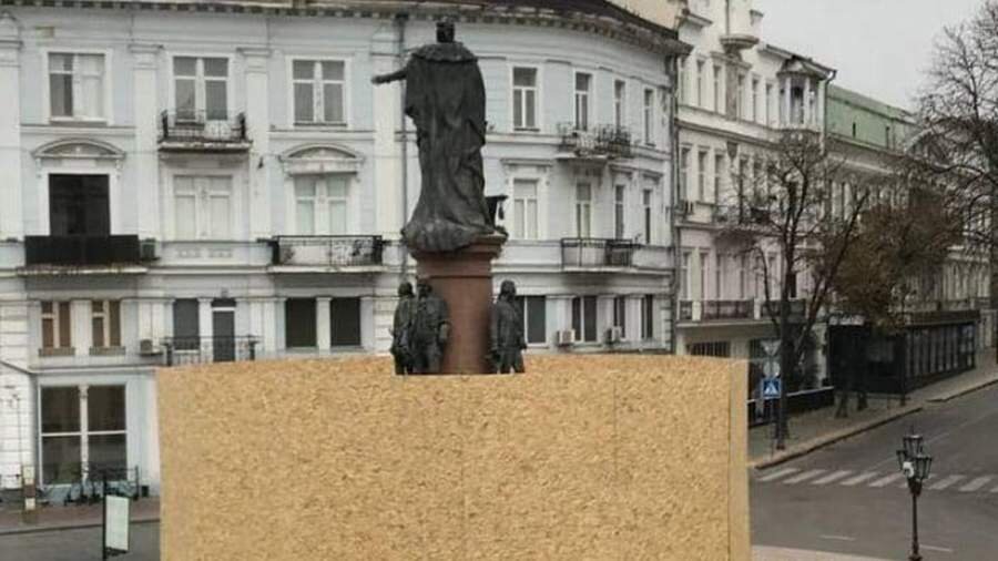 Вокруг памятника российской императрице Екатерине II в Одессе появилось ограждение в виде деревянного забора. Об этом сообщает 6 ноября издание Страна.ua. Отмечается, что это было сделано из-за многочисленных нападений на монумент и актов вандализма, пишет «Газета.Ru». Ранее, 5 ноября, мэр Одессы Геннадий Труханов поддержал демонтаж памятника Екатерине II. По его словам, на онлайн-платформе «Социально активный гражданин» завершено голосование, посвященное дальнейшей судьбе монумента, и «большинство проголосовавших одесситов поддержали идею демонтажа памятника с Екатерининской площади». Желания граждан «будут учтены депутатами», отметил он. До этого, 2 ноября, сообщалось, что вандалы надели мешок красного цвета на памятник российской императрице Екатерине II в Одессе, а на руку скульптуре намотали веревку с петлей. Кроме того, красной жидкостью был облит и постамент под памятником. 25 августа стало известно о предложении замглавы Одессы Павла Вугельмана дерусифицировать более 200 улиц г