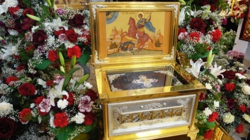 В IV веке над могилой святого в Салониках возвели церковь — базилику Святого Димитрия. Затем была построена большая церковь, ее алтарная часть находится над предполагаемой могилой святого, а при ее строительстве были обретены его мощи. Их поместили в серебряный киворий, особый навес, называемый также «алтарная сень».