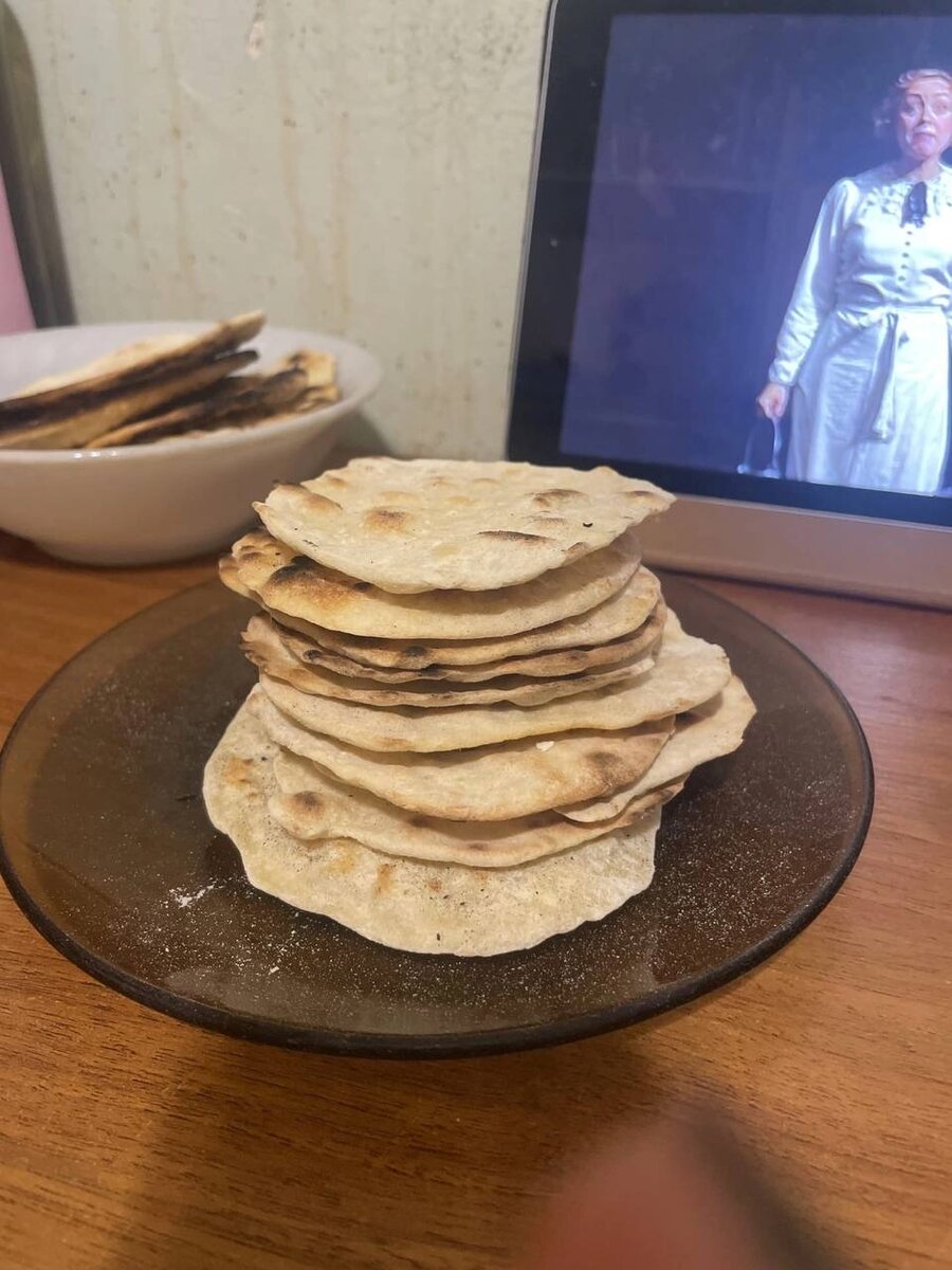 Всем привет ✋ Хочу поделиться максимально простым рецептом, всего из двух ингредиентов. Маца Нужно: Мука пшеничная (любая другая тоже подойдёт) - 500 гр. Вода - 200 мл. Лучше брать кипячёную, температурой примерно 40 градусов, но можно и из под крана, холодную. Муку просеиваем. Замешиваем тугое тесто. Раскатываем тонкие лепёшки. Лепёшки можно делать любого размера, но не слишком большие, иначе их будет неудобно выкладывать на сковороду. Затем лепёшки накалываем вилкой, дырочек лучше делать побольше, чтобы лепёшки не вздувались. Раскалить сковороду (можно использовать чугунную или антипригарную), затем убавить огонь до средней температуры. Выпекать мацу на сковороде без масла по 1-2 минуты с каждой стороны. Така как лепёшки пресные, их можно есть с чем угодно: с сыром, паштетом, вареньем, а также использовать вместо хлеба.