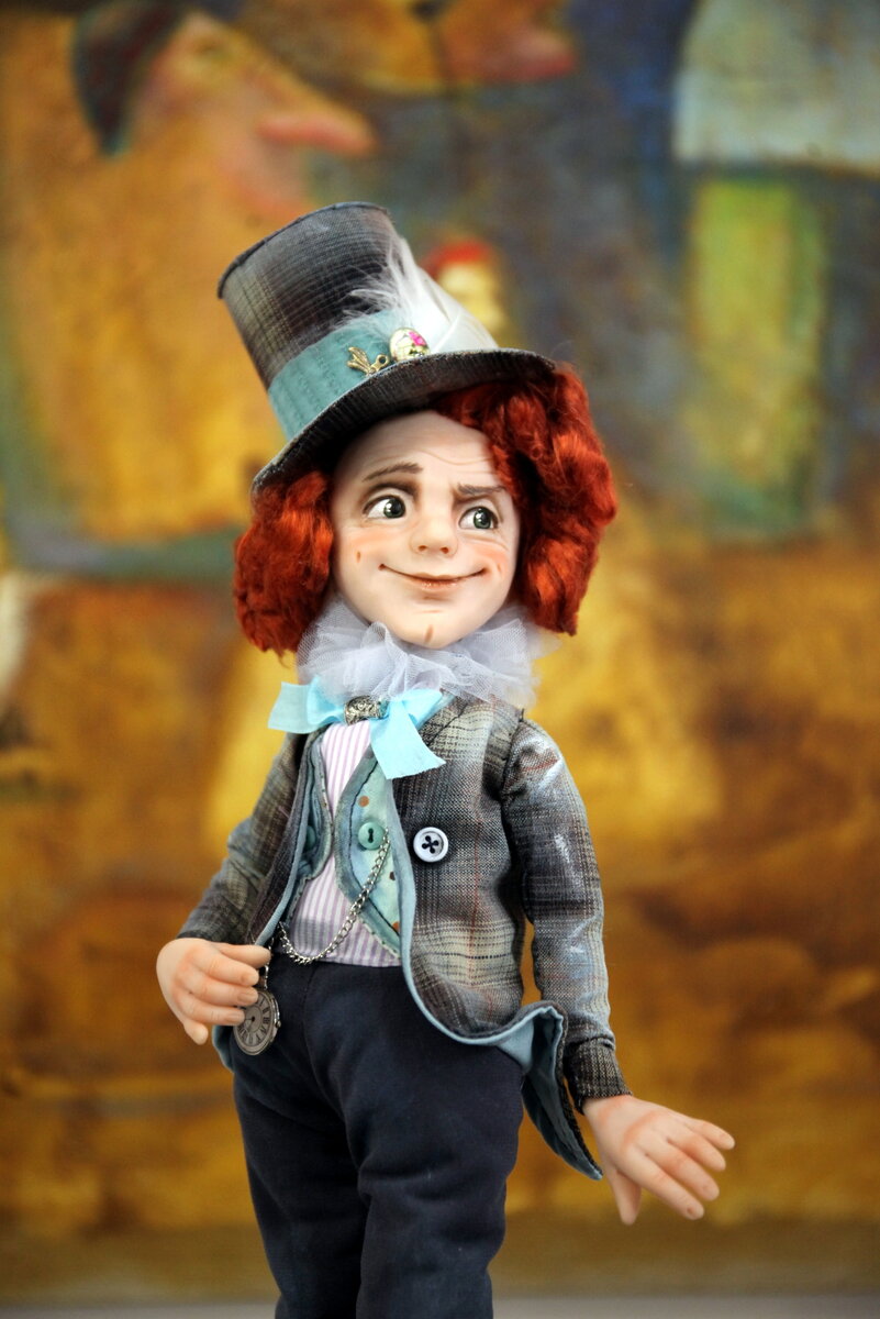 Дорогие друзья! Представляем вам работу Анны Фадеевой, которую можно увидеть на выставке "Куклы с характером" в Кремле в Измайлово. Сама выставка продлится до 20 декабря. "Шляпник" Конечно, на первый взгляд, Анну вдохновил образ Шляпника, созданный Льюисом Кэрролом - вымышленный персонаж книги "Приключения Алисы в стране чудес" 1865 года и ее продолжения "Зазеркалье" 1871 года. Его очень часто называют Безумным Шляпником, хотя Кэрролл никогда не использовал этот термин. Фраза "безумный, как шляпник" предшествует произведениям Кэрролла. Чеширский кот называет Шляпника и Мартовского зайца "оба сумасшедшие" в шестой главе "Приключений Алисы в стране чудес" под названием "Свинья и перец". В главе седьмой – "Безумное чаепитие", исследуя Страну чудес, Алиса натыкается на Шляпника, пьющего чай с Мартовским зайцем и Соней. Шляпник объясняет Алисе, что они всегда пьют чай, потому что, когда он попытался спеть для вспыльчивой Червонной Королевы, она приговорила его к смертной казни за "убийств