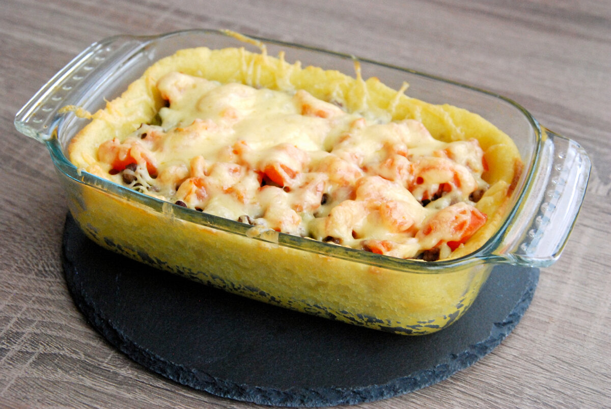 Этот рецепт пирога очень старый, а значит — проверенный временем и гарантированно вкусный. В каких-то изданиях его называют «деревенским». Пирог открытый, а начинку к нему можно сделать любую — буквально из того, что есть в холодильнике. Я покажу вам свой вариант с мясным фаршем. Готовим пирог на картофельном тесте с начинкой из мясного фарша Полный список ингредиентов — в первом комментарии под этой публикацией. Итак, берем любой мясной фарш (у меня — говяжий) и обжариваем его в небольшом количестве растительного масла. Не забываем в процессе разбивать фарш лопаткой, чтобы он не комковался. Как только мясо изменит цвет, отправляем к нему тонко нарезанный репчатый лук. Обжариваем еще минуты 3, а в самом конце добавляем зеленый горошек (из банки) и немного острого перца халапеньо (по желанию, можно заменить болгарским перцем). В начинку также можно положить и замороженный горошек, и готовую овощную смесь, и кабачки, и фасоль. Время обжаривания тогда стоит подрегулировать. Теперь пок
