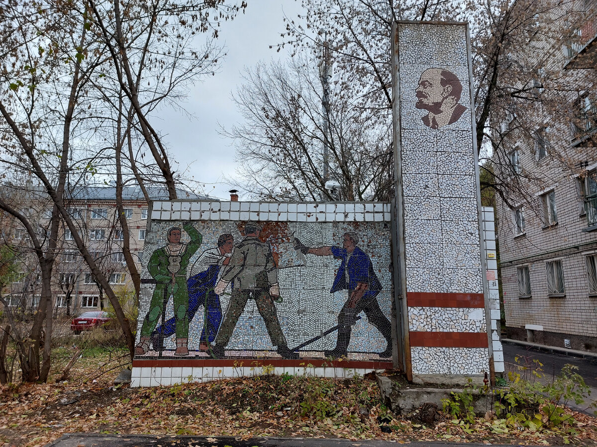 День 7 ноября - красный день календаря ..... Накануне праздника, или уже не праздника .... Прошлись с Зульфией по "ленинскому" маршруту. Получилась "доска почета". Тем более, что 2 пункта, по-моему, и есть остатки от досок почета. И я - в "красных революционных шароварах" Маршрут: - мозаика во дворе на ул Восстания - бюст на Воровского - сграфито на Гагарина Памятники Авиастроительного района: - в парке Крылья Советов - около заводоуправления - около офисного здания Другие публикации о дорогом Владимире Ильиче